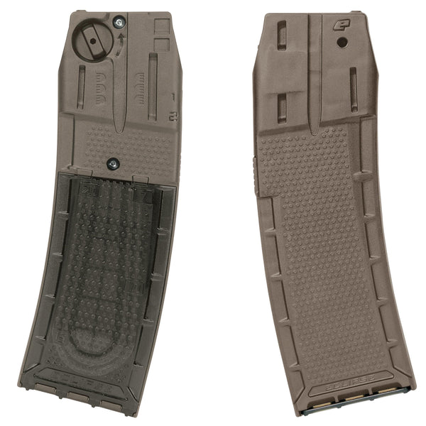 • Tool less access to the magazine loading chamber courtesy of its removable side panel, loading .68 cal paintballs or shaped projectiles (such as First Strike rounds) can be done with speed and accuracy. This access also helps to ensure all rounds are stacked correctly, to eradicate flipped FSRs and jams. The side panel also houses orientation indicators for First Strike rounds and shot capacity indicators to help players keep tabs on their magazine load.